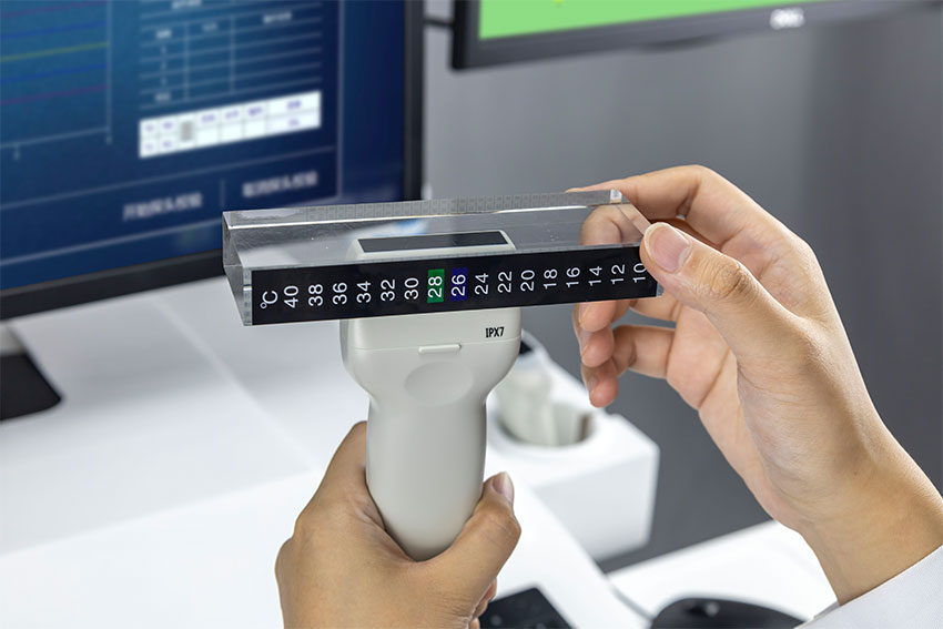 技术规格 测量部分:桡骨/胫骨。 探头工作方式:双发双收。 超声波工作方式:轴向骨传播。 测量参数:轴向骨传播声速(SOS)M/S。 数据分析:智能实时数据分析系统。 大规模集成电路 多层电路板设计 高屏蔽多点信号接触模式 精密拉丝金属模具制造 基于中国人数据专用分析系统